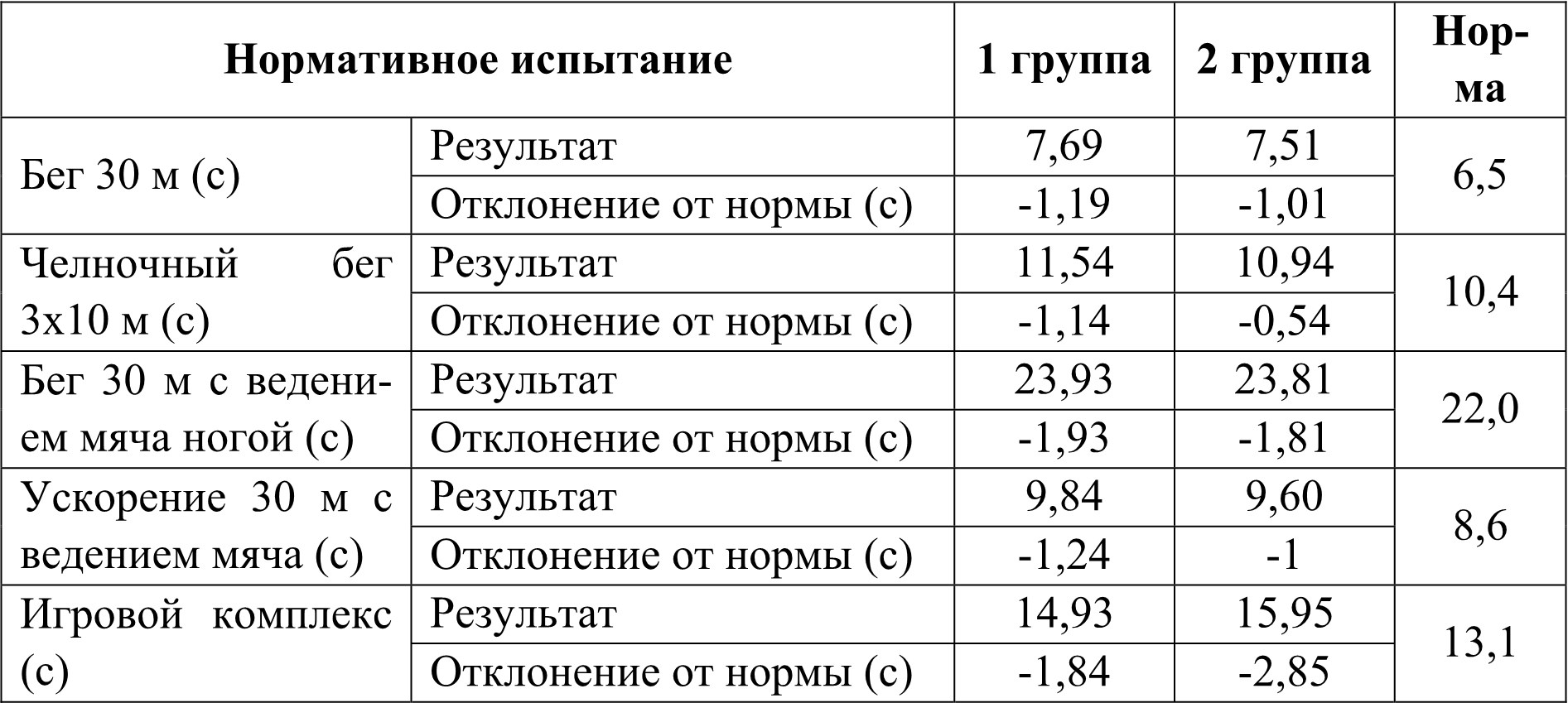 Данные испытания подразумевают под собой системный подход в применении комплекса упражнений с учетом развития такого физического качества, как ловкость [1]. Результаты проведения контрольных испытаний и норма показателей [3] представлены в таблице 2.