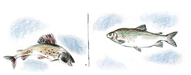 Пока Михаил колдовал над костром, я нашёл огромную корягу, выступавшую из воды, забрался на неё с удочкой. Несколько длинных теней метнулось от моего отражения. Это были красивые рыбины с пятнистыми спинками. Плавники похожи на яркие крылья тропических птиц. Восторг!