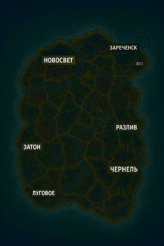 Крупный город «Новосвет». Много укрытий, оружия, припасов.