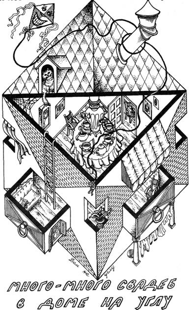 Так вот в этом самом доме на углу и поселились после свадебки Тряпичная Кукла и Веник. Туда же переехала одна пожилая пара, Молоток и Гвоздья, вместе со всеми своими маленькими Молоточками и Гвоздиками.