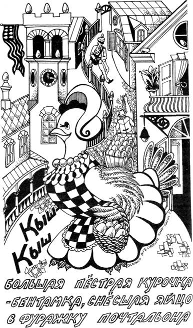 Задолго до того, как это случилось, Кыш-Кыш уже вернулась в курятник, и встав в дверях, проговорила: «Сегодня у меня большой день, я снесла яйцо, яйцо большой пестрой курицы-бентамки, в фуражку почтальона».