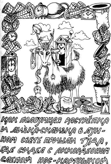 Тут Полоумная Растрепка и Лизка-Склизка прискакали вприпрыжку и сказали: «Что за туманный, обманный вечер в лунном безумном свете?»