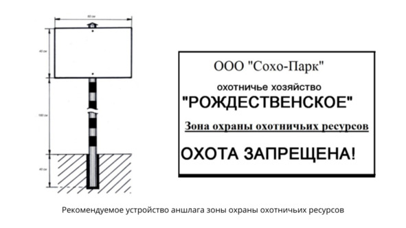 В соответствии с приказом Министерства природных ресурсов РФ от 12 ноября 2010 г. №503 «Об утверждении порядка установления на местности границ зон охраны охотничьих ресурсов» границы зон охраны должны быть обозначены на местности специальными информационными знаками, на которых должны быть указаны сведения