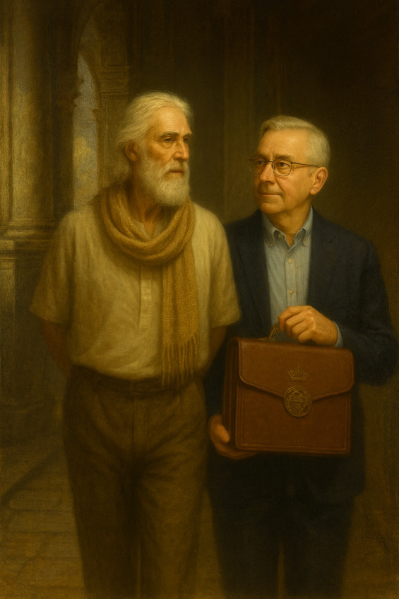 In his hands he held a briefcase with the engraving of the Kingdom of Mann. Inside were scrolls, certified copies of the mission protocol, a letter from His Majesty, and a thin leather notebook where all his thoughts about the emission model of the future were written down.