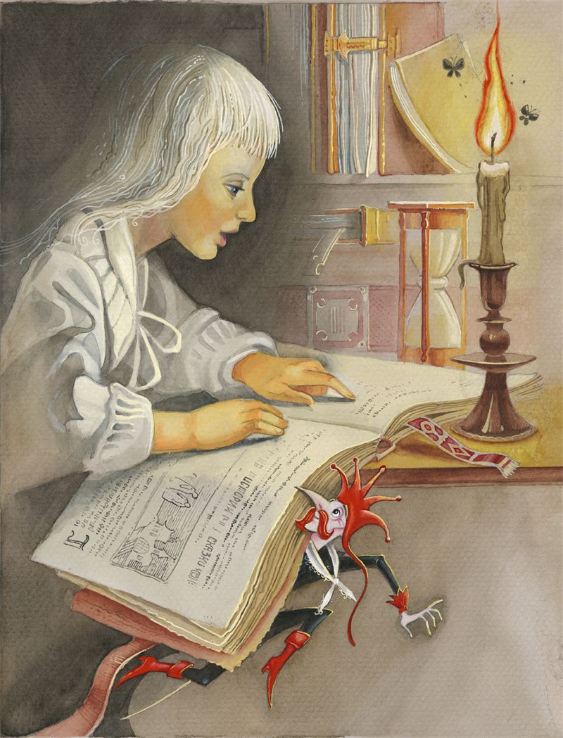 В числе тридцати или сорока детей, обучавшихся в том пансионе, находился один мальчик, по имени Алёша, которому тогда было не более 9 или 10 лет. Родители его, жившие далеко-далеко от Петербурга, года за два перед тем привезли его в столицу, отдали в пансион и возвратились домой, заплатив учителю условленную плату за несколько лет вперёд. Алёша был мальчик умненький, миленький, учился хорошо, и все его любили и ласкали. Однако, несмотря на то, ему часто скучно бывало в пансионе, а иногда даже и грустно. Особливо[3] сначала он никак не мог приучиться к мысли, что он разлучён с родными своими. Но потом мало-помалу он стал привыкать к своему положению, и бывали даже минуты, когда, играя с товарищами, он думал, что в пансионе гораздо веселее, нежели в родительском доме. Вообще дни учения для него проходили скоро и приятно, но когда наставала суббота и все товарищи его спешили домой к родным, тогда Алёша горько чувствовал своё одиночество. По воскресеньям и праздникам он весь день оставался один, и тогда единственным утешением его было чтение книг, которые учитель позволял ему брать из небольшой своей библиотеки. Учитель был родом немец, в то время в немецкой литературе господствовала мода на рыцарские романы и на волшебные повести, и библиотека эта большею частию состояла из книг сего рода.