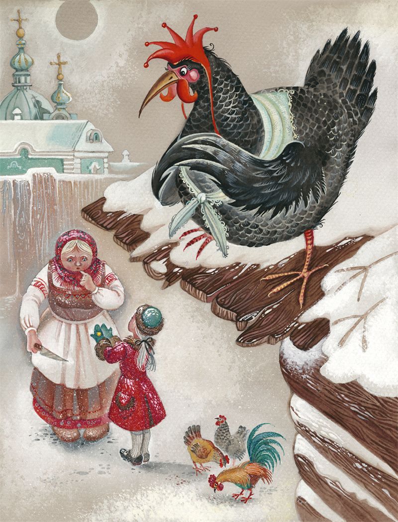 – Дверь заперта ключом, – сказал Алёша; но курочка ему не отвечала: она хлопнула крыльями, и дверь сама собою отворилась.