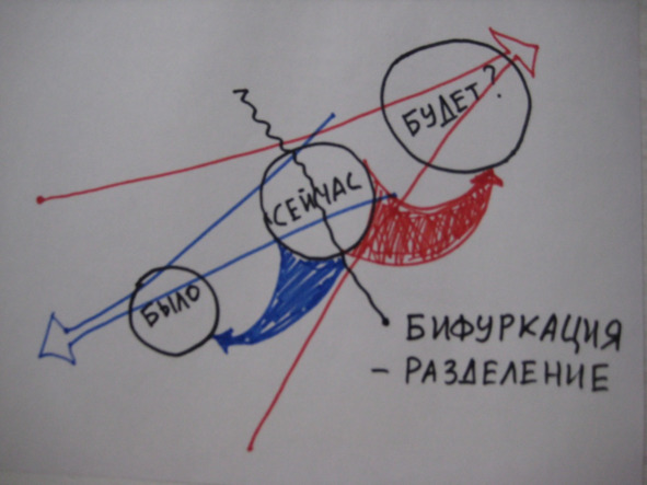 Так как на современное человечество действуют разнонаправленные силы из Вне, то происходит тот процесс, который учёные синергетики называют «бифуркацией».