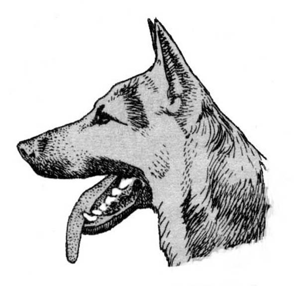 – обычная, если верхняя линия морды параллельна линии лба (немецкая овчарка, ризен-шнауцер) (Рис. 8);