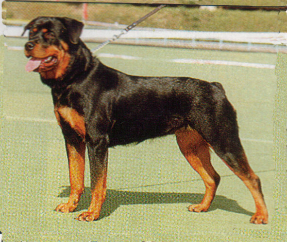 Крепкий тип конституции. Крепкий тип характеризуется силой и уравновешенностью нервных процессов. Отличительные особенности – физическая активность и наилучшая дрессируемость. Костяк хорошо развит, мышцы и кости умеренно вытянуты. Голова в форме клина, но более широкого, чем у животных сухой конституции. Переход ото лба к морде заметно выражен. Глаза средней величины, косо или прямо поставленные. Челюсти хорошо развиты, скуловые дуги заметны. Зубы крупные, прикус ножницеобразный. Шея среднего постава и умеренного объема по длине приблизительно равна длине головы. Грудная клетка развита, чаще умеренной ширины. Живот заметно подобран. Углы сочленений конечностей правильные, сочленения сухие, хорошо выраженные. Кожа эластичная, плотная, не образующая складок. Шерсть разнообразная с развитым подшерстком. Половой диморфизм (внешние различия между кобелем и сукой в породе) хорошо выражен. Тип высшей нервной деятельности – сангвинический. Типичные представители этого конституционального типа: немецкая овчарка, ротвейлер, черный терьер, боксер, стаффордширский терьер (фото №6—7).