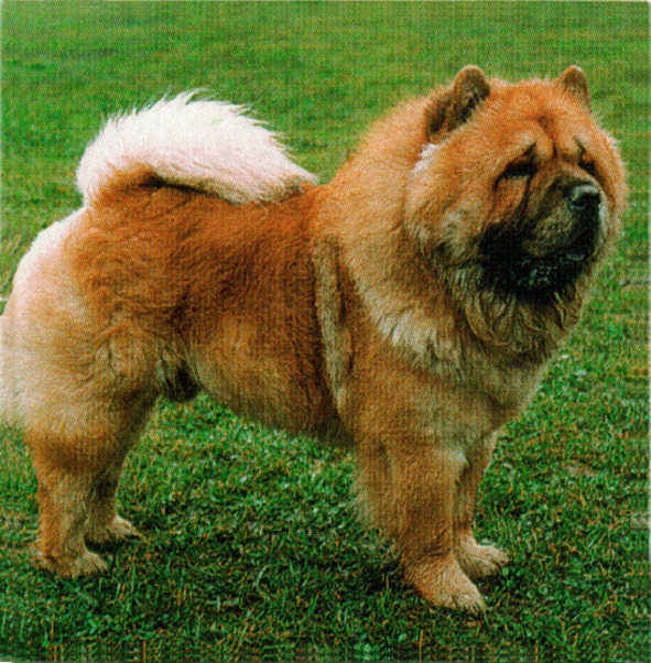 Грубый тип конституции. Этот конституциональный тип характеризуется сильными и уравновешенными нервными процессами, однако поведение таких животных менее активное, если сравнивать с представителями крепкого типа конституции. Костяк мощный, конечности кажутся укороченными. Голова крупная, в виде усеченного широкого клина, или кирпичеобразная. Переход ото лба к морде слабо выражен. Морда короткая, объемная. Губы толстые, плотно прилегающие. Глаза небольшие, глубоко сидящие, прямого или косого постава. Челюсти мощные, скуловые дуги хорошо выражены. Зубы крупные, часто имеются отклонения от ножницеобразного прикуса в виде клещеобразного прикуса (стыка), или перекуса. Шея объемная, низкого выхода, чаще всего имеется подвес. Грудная клетка массивная, ребра выпуклые. Живот слабо подобран. Конечности имеют выпрямленные углы сочленений. Сами сочленения грубые, нечетко выраженные. Кожа толстая, упругая. Складки образуются только под шеей. Шерсть грубая, чаще всего прямая, с хорошо выраженным подшерстком. Половой диморфизм сильно выражен. Тип высшей нервной деятельности – флегматический. К типичным представителям данного типа можно отнести кавказских и среднеазиатских овчарок, маламутов, чау-чау (фото №8—10).