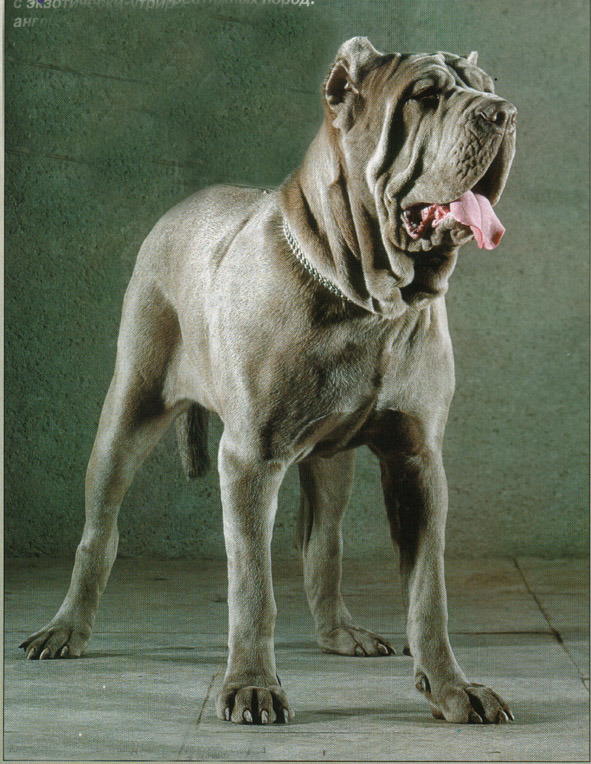 Сырой (рыхлый) тип конституции. Данный тип конституции характеризуется умеренным по силе возбуждения и повышенным по силе торможением. Общая активность животных значительно снижена, слабая работоспособность. Костяк очень мощный, тяжелый. Кости укорочены. Мускулатура массивная, но сырая, не рельефная. Голова объемная, средней длины, как правило, имеющая большую высоту в черепной части. Переход ото лба к морде хорошо выражен. Морда короткая, объемная. Мочка носа крупная. Губы толстые, отвисшие. Глаза глубокопосаженные, прямопоставленные. Общая форма головы кирпичеобразная или в виде тупого усеченного клина. Скуловые дуги хорошо выражены, челюсти развиты. Зубы крупные. Зубной прикус имеет тенденцию к перекусу. Шея массивная, низкого выхода, на нижней части образуются большие продольные складки шкуры (подвес). Грудная клетка имеет большой объем, ребра выпуклые. Живот не подобран, часто отвислый. Весь корпус имеет несколько цилиндрическую форму. Подкожная жировая клетчатка заметно развита. Углы сочленений конечностей сильно выпрямлены. Часто встречаются дефекты строения конечностей. Суставы объемные, нечетко очерченные. Кожа толстая, неэластичная, иногда образует складки. Шерсть грубая, прямая или волнистая, подшерсток развит. Половой диморфизм выражен. Тип высшей нервной деятельности меланхолик или флегматик. Типичные представители: мастино, английские бульдоги, бордосские доги, сенбернары (фото №11—13).