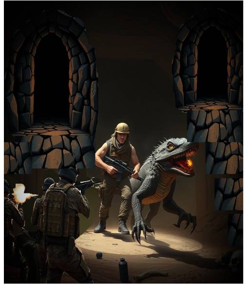Скоро стало ясно, что враги так и не появились и Николай рявкнул, чтобы бойцы прекратили стрельбу. Надо было беречь драгоценные боеприпасы и выжидать. Пороховой дым быстро рассеялся, и Костин увидел сноп голубоватого света, исходящего от одного из боковых ходов. В конусе яркого свечения можно было различить огромную тушу невиданного чешуйчатого зверя, частично разорванного взрывом гранаты. Труп существа даже после смерти вызвал дрожь у бывалых бойцов. Это был идеально приспособленный для убийства хищник с длинными когтистыми лапами, цилиндрическим телом, коротким толстым хвостом и объемной оскаленной пастью, похожей на волчью.