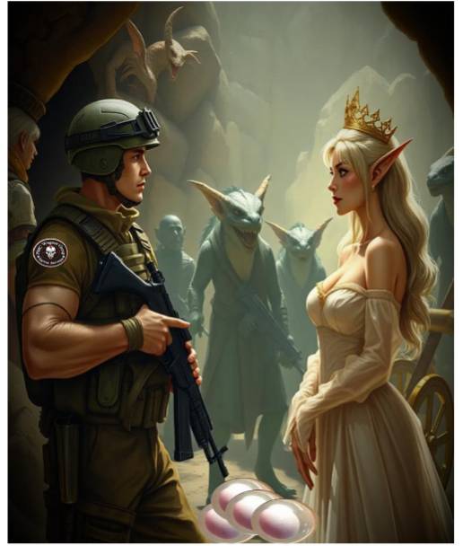 – Бугай! Кажется, так тебя кличут солдаты? Я принцесса Ягиня. Прикажи отбросить ваше примитивное оружие и гранатные сумки, иначе скормлю моим ездовым ящерам. Все вы преступники и вместо заслуженного сурового наказания убиваете других людей в угоду нефтяным богачам. Я же предлагаю служить мне, и щедрая награда утешит и успокоит ваши жалкие души.