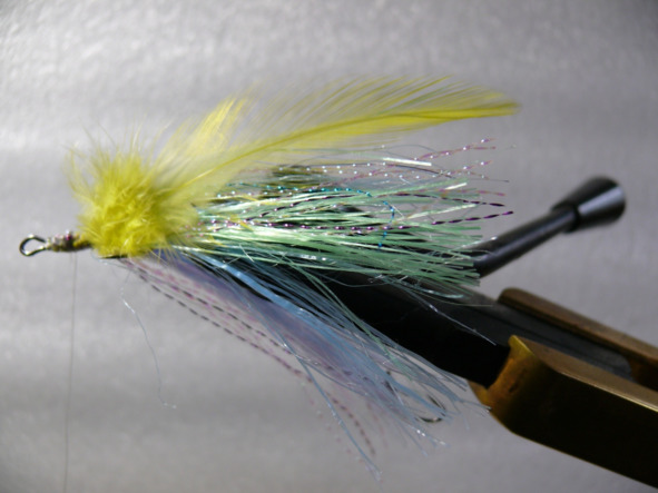 Стримеры – мушки имитирующие малька. Один под мелкого, условно называю его «июльским». Второй – «баковый» (волосяной), под малька подросшего к осени до 5—10 см., остановившегося в росте зимой и ставшего в марте-апреле основой кормовой базы хищника. Обь в это время года уже открыта ото льда, можно бросать спиннингом. Вязать второй вариант мы будем в феврале, время терпит. Заготовить разходный запас «июльских» необходимо в первую очередь. Если брать по массе, то большую часть всей пойманной за жизнь рыбы, включая детство, молодость и часть зрелого возраста, обеспечил именно этот стримерок. Хотя использовался он без внешних изменений всего лишь с 1995 года.