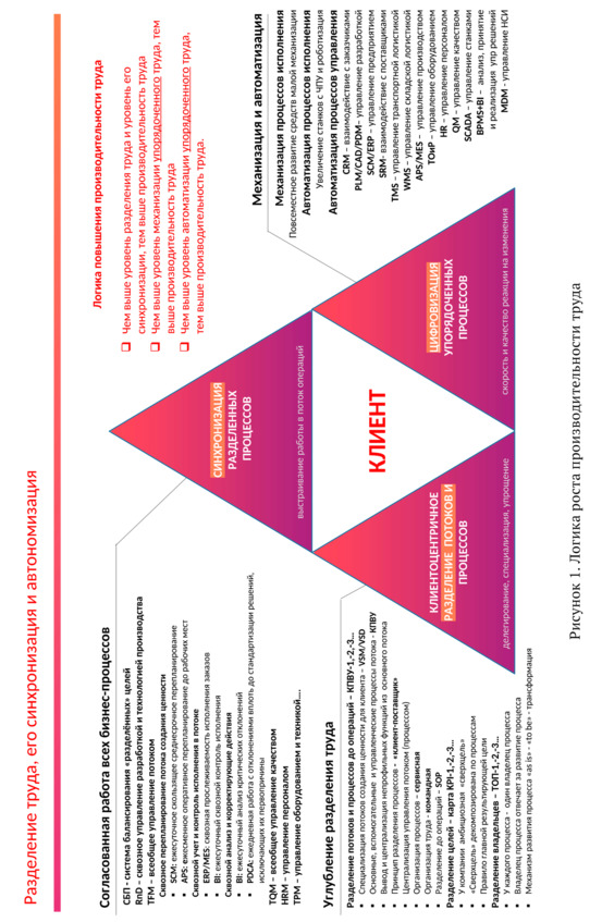 Клиентоцентричный поток создания ценности формируется на основе трёх ключевых принципов операционной эффективности: углубления уровня разделения труда, его синхронизации и автономизации.