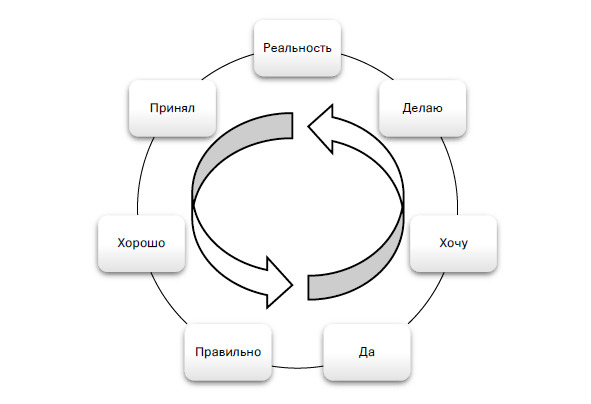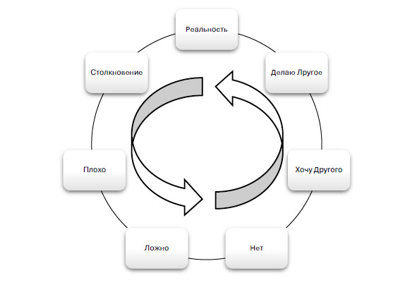 – Нет (Решение): мы принимаем решение, что так не должно быть и отвергаем сформировавшийся образ результата, формируя новую реальность.