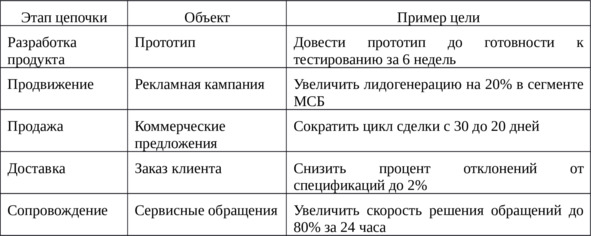 Типы целей в цепочке создания ценности