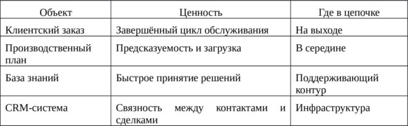 Когда система не размечена по объектам, цепочка создания ценности выглядит как бесконечный поток действий.