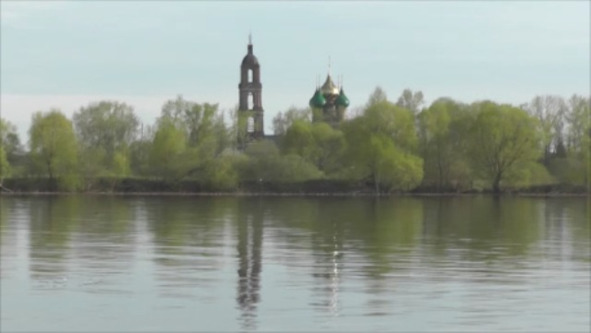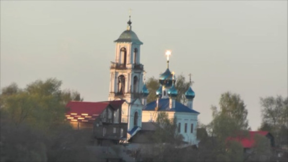 На левом берегу, в свете заходящего солнца, появились блестящие удивительным голубоватым цветом купола церкви и крест излучающий яркое золотое сияние – как светлое предзнаменование и добрый знак нашей путеводной звезды.