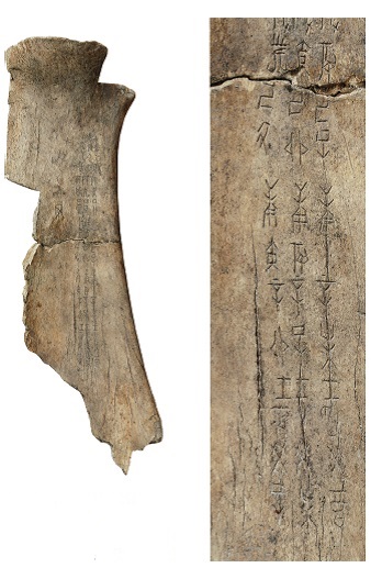 Коровья кость с вырезанной на ней системой лето-исчисления. Эта лопаточная кость животного, от-носящаяся к периоду заката династии Шан, служит подтверждением использования циклической системы летоисчисления в тот период истории