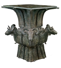 Квадратная чаша цзунь с четырьмя баранами. Самая большая из обнаруженных в Китае квадратных чаш цзунь, изготовленная по технологии двукратной отливки. Историки называют ее вершиной технологической обработки бронзы; относится к 10 величайшим объектам национального достояния