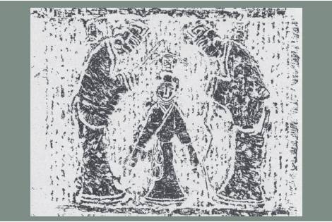 Каменный барельеф (эстамп) с изображением министров династии Чжоу, склоняющих головы перед Чэн-ваном. Династия Восточная Хань