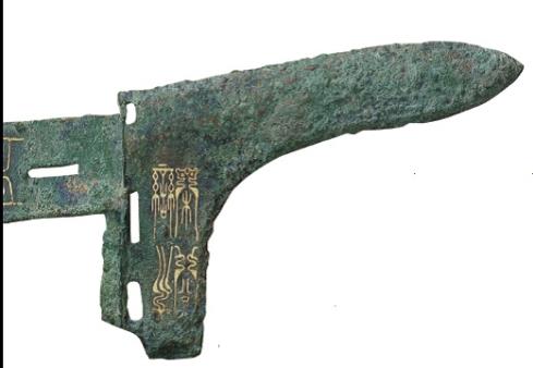 Бронзовый клевец гэ Сун Гунлуаня. Сун Гунлуань – это второе имя Сун Цзингуна. Эксклюзивное оружие царя с выгравированными золотыми иероглифами