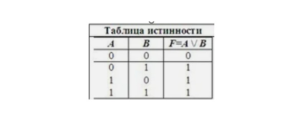Логическое умножение – конъюнкция. Принятые обозначения: /\, •, и, and. Этой операции соответствует знак умножения. Например, переменные А=0, B=0, то F=A*B=0*1=0. То же самое можно представить в виде примера А=«Немцы победили русских в Великой Отечественной войне»=0, ложь, т.к. русские выиграли, B=«Лимон кислый на вкус»=1, истина, т.к. это соответствует действительности. Тогда A*B=0*1=0, т.к. мы настаиваем, чтобы и А, и B выполнялось (через действие умножение), поэтому значением выражения будет ложь. Остальные значения таблицы истинности вы можете посмотреть на Рисунке №3. Логическая формула истинна только в одном случае и ложна в трех других.