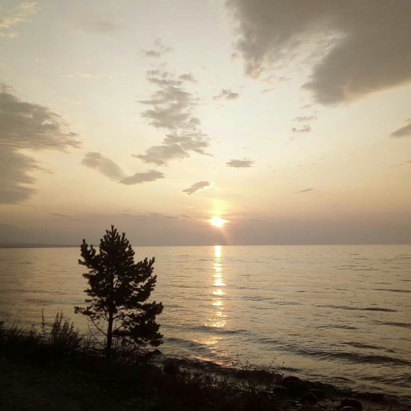 Спустилась по дорожке меж песчаных дюн на берег. Посидела там, будто в медитации. Встретила байкальский рассвет. Оранжевое солнце. Оранжевое небо. Оранжевый Байкал. Ветки сосны нависают над обрывом. Ленивые волны нехотя шлёпают по крупной гальке… Сон сморил меня только под утро.
