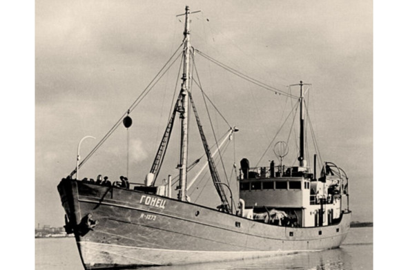 В 1951 году в Германии был спущен на воду СРТ – 230. Это средний рыболовный траулер с открытой кормой. Порт приписки – Калининград. Главный двигатель – 300 л. с. Позывной судна – UVIT. Судну было присвоено название – «Kazimir Pukinskiy» в честь погибшего капитана Пукинского Казимира Казимировича. Судно вошло в состав Управления тралового флота порта Пионерский. Настоящей фотографии судна я не имею, но оно такого же типа, как этот «Гонец».