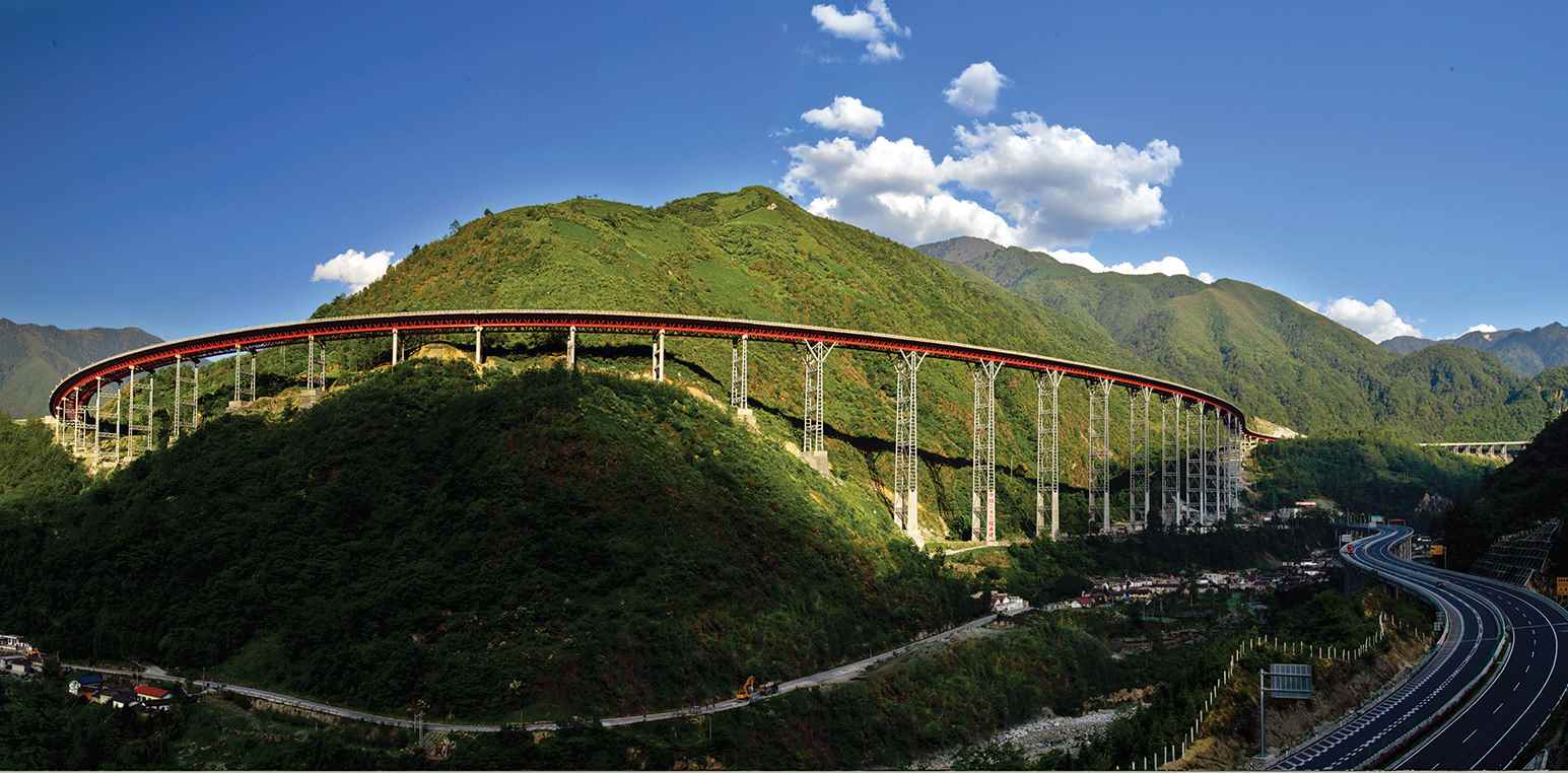 Скоростная автомагистраль Яси (Яань – Сичан) поднимается от окраины Сычуаньской равнины к горному хребту Хэндуань, пронизывает облака и туман, пересекает горы и долины, подобно длинному дракону, извивающемуся среди высоких гор. Она получила прозвище «Небесная лестница скоростной дороги». Эта скоростная автомагистраль длиной 240 км включает