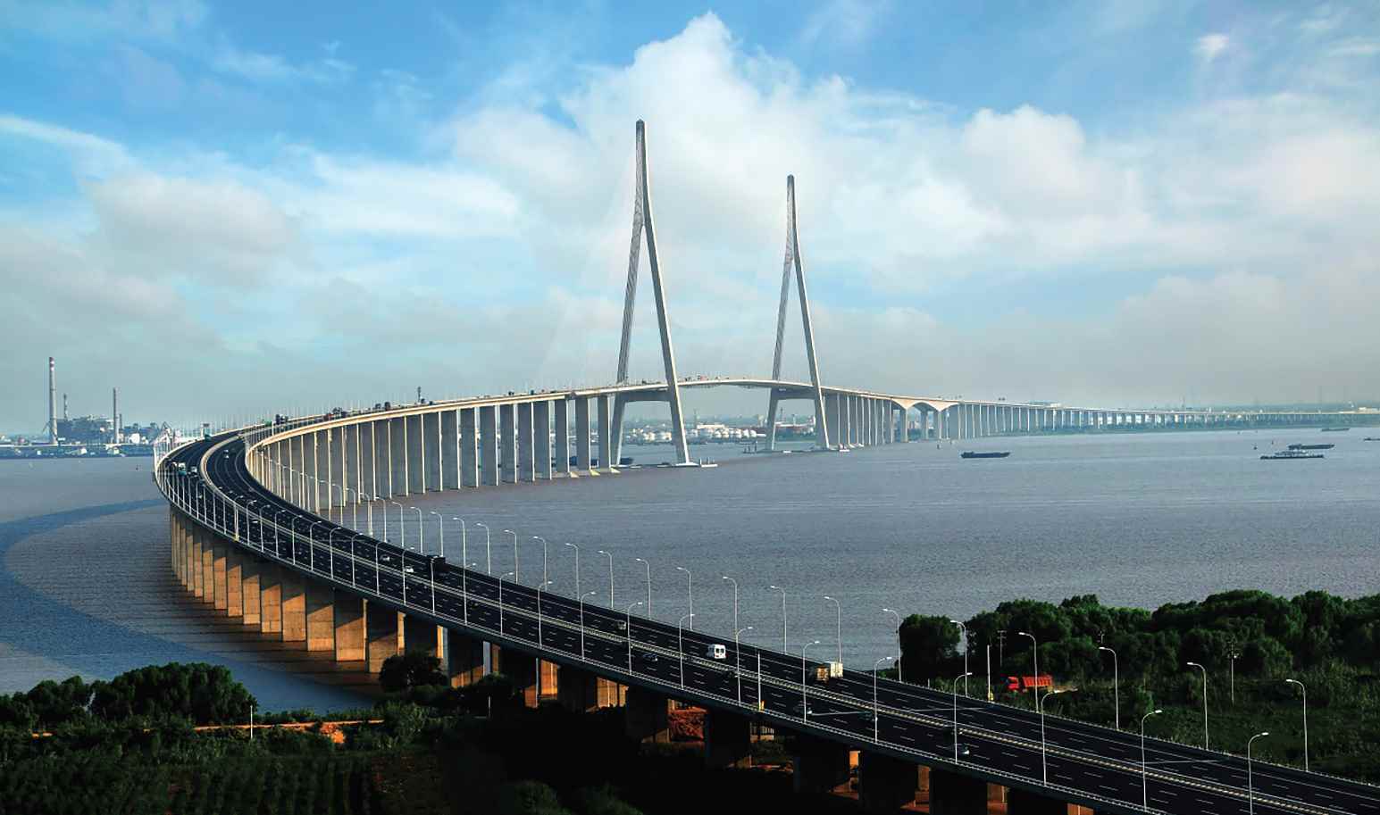 Схема вантового моста с основным пролетом 1088 метров, по сравнению со схемой подвесного моста, широко использовавшейся ранее, не только напрямую экономит около 200 миллионов долларов США на инвестициях в проект, но и позволяет избежать возможного ущерба, наносимого реке Янцзы и водной экосистеме огромными подводными якорями, обеспечивает безопасность судоходства по Янцзы и экологическую устойчивость вод течения устья Янцзы со значительными экономическими и экологическими выгодами.