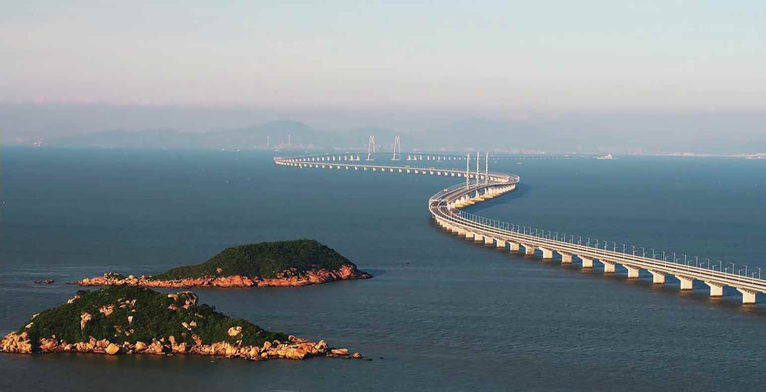Мост Гонконг – Чжухай – Макао является самым длинным в мире мостом через море, имеющим наибольший общий пролет, самую длинную стальную конструкцию моста и самый длинный подводный туннель из всех мостов через море. Это также первый в мире глубоко залегающий подводной трубный туннель, который лежит более чем на 20 метров под морским дном,и его называют Эверестом транспортного строительства. Из-за многих беспрецедентных аспектов строительства британская газета «Гардиан» назвала его одним из «Семи новых чудес света».