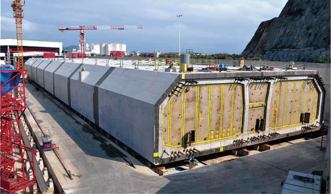 В процессе строительства искусственных островов для островных и туннельных проектов была использована технология быстрого сооружения островов с использованием глубокого вставного стального цилиндрического корпуса. Это ускорило процесс строительства. Вибрационное погружение 120 стальных цилиндров для восточного и западного искусственных островов было завершено за 207 дней.