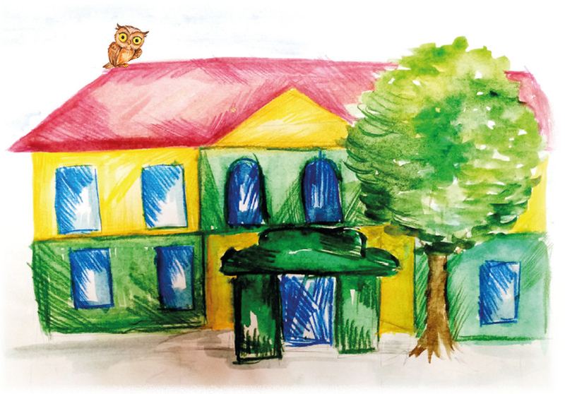 На перекрёстке женщина повернула налево и совёнок увидел библиотеку.