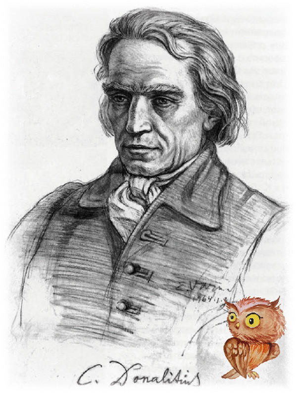 Женщины стали обсуждать новинки книг, а внимание Упе привлёк портрет, ещё не известного ему мужчины. Совёнок прочитал (к счастью, он это умел!): «Кристионас Донелайтис – выдающийся литовский поэт XVIII века, лютеранский пастор, (1714–1780) …