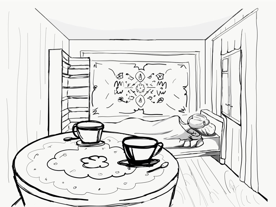 Руслан прошёл захламленные тёмные коридоры и уже сидел за круглым столом в центре комнаты, когда она тихо произнесла: