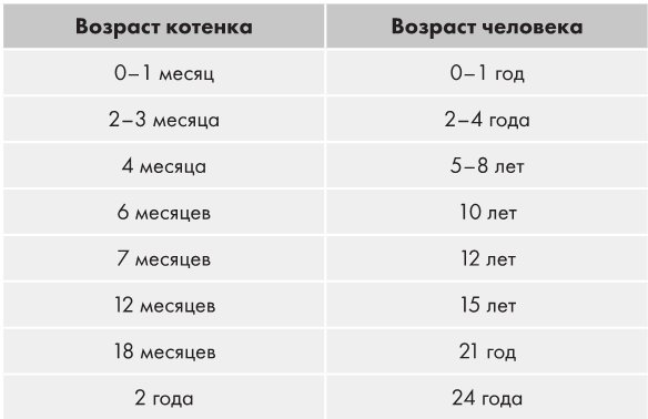 Такие таблицы популярны у хозяев и хороши тем, что помогают соотнести степень зрелости своей кошки с понятным ориентиром – человеческим возрастом. Воспринимать их стоит именно так. По ним наглядно видно: взросление и возникновение порой излишне импульсивного, подросткового, проблемного для хозяев поведения происходит как раз в районе 2–3 лет.