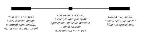 Представьте, что Вы попали под дождь. Вы этого не ожидали, промокли и заболели. И теперь запишите первую мысль об этой ситуации, не поленитесь, выполните это упражнение письменно, напишите прямо сейчас и прямо здесь, что Вы думаете, кто виноват, почему это произошло, зачем Вам эта ситуация. И только после этого переверните страницу.