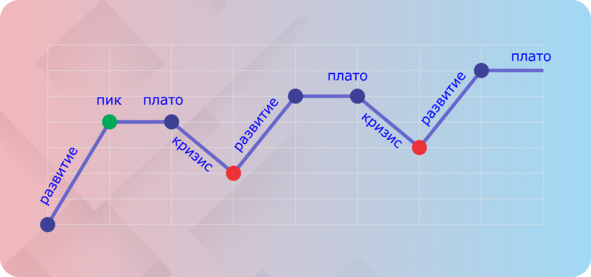 Любое плато заканчивается кризисом. Кризисы могут быть плановые – подростковый период, кризис среднего возраста, кризис старения – которые коснутся всех, так или иначе.