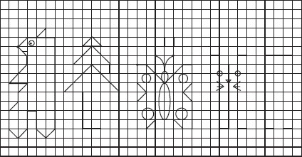 Графические диктанты[2]Выполняются на бумаге в клеточку под диктовку взрослого. Ребенка просят провести линию следующим образом: