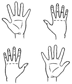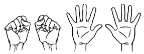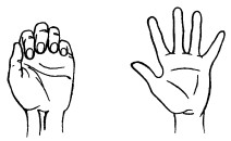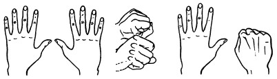 25. Поочередно пригибают пальцы к ладошке, начиная с большого. Затем поочередно разгибают пальцы, начиная с большого.