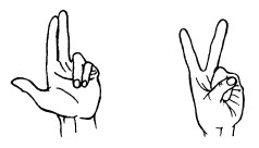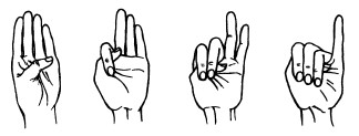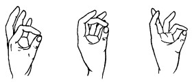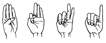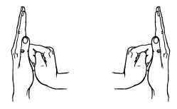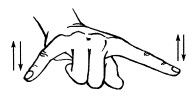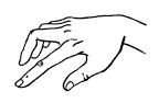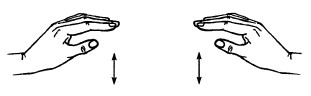26. Пальцы сжаты в кулачок, выдвинуты указательный палец и мизинец. Продвигаясь вперед, следует медленно шевелить пальцами.