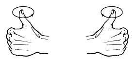 6. Обе ладони сжаты в кулачок, большие пальцы подняты вверх, выполняются круговые движения большими пальцами.