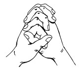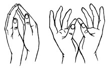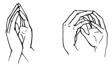 15. Пальцы сплетаются, ладони соединяются и стискиваются как можно сильнее. Потом руки опускают и слегка трясут ими.