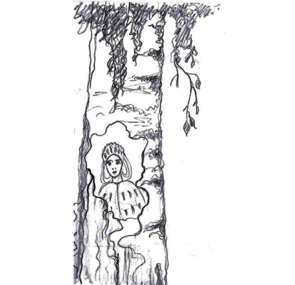 Гром и молнии обрушились на лес, земля содрогнулась. Резчик чуть не сорвался с дерева. Когда он оказался на земле и огляделся, он увидел вместо берёзки красоту неописанную в горностаевой мантии, в собольей шапочке, в вышитых торбазах. Стояла белолицая черноглазая тростиночка с такой благодарностью во взгляде, что резчику захотелось взять её на руки, прижать к сердцу и нести-нести в безопасное место.