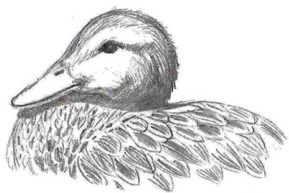 Проголодался он, решил поохотиться. Привязал коня, пошёл меж могучих стволов деревьев. Не встречает следов лесных зверей. Вышел к лесному озеру. Видит – стая диких уток садится на озеро. В закатном солнце они представляли собой лёгкие цели.