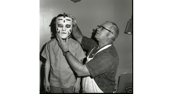 А вот Glenn Hall экспериментировал с таким типом маски, несколько видоизменив нижнюю ее часть, однако игровая маска выглядела иначе. Впрочем, о Гленне Холле более важна и интересна другая история, коснемся ее чуть позже, потому как Mr. Goalie того заслуживает!
