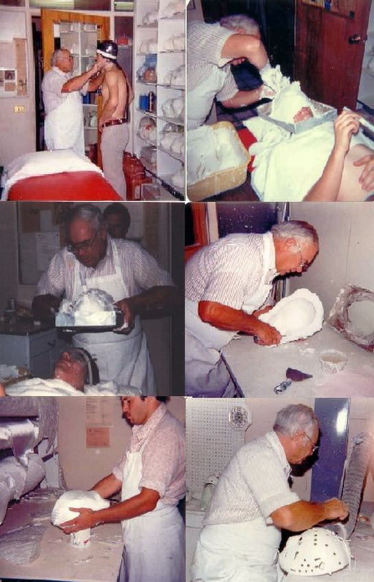 Вазелин, женский чулок, гипс и стекловолокно стали главными составляющими в изготовлении масок… ну еще трубочки, для того, чтобы заказчик мог дышать с их помощью, в то время, как подсыхает слепок маски на его лице. Иллюстрации нам помогут понять, насколько трудна и продолжительна была процедура.