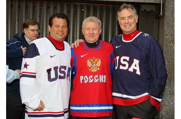 Mike Eruzione, Владимир Мышкин, Jim Graig (слева направо)